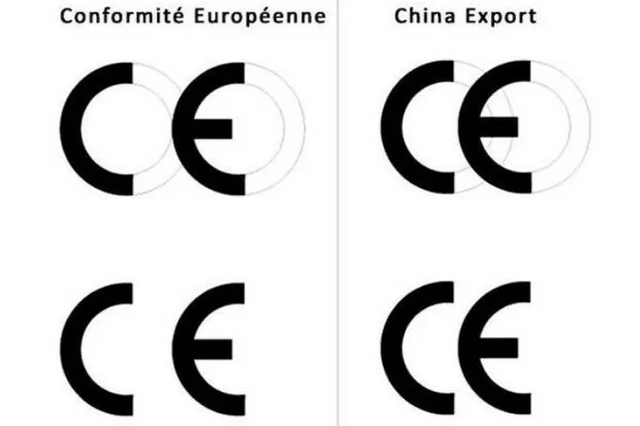 Originál značka CE (naľavo) je oficiálna značka určená na certifikáciu výrobkov spĺňajúcich technické predpisy z oblasti posudzovania zhody, značka vpravo udajný šikovný výmysel čínskych obchodníkov ako predávať necertifikované výrobky v EU.